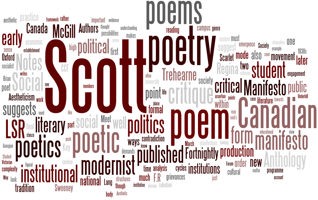 “F.R. Scott and the Emergence of a Poetics of Institutional Critique.” Canadian Poetry: Studies, Documents, Reviews 66 (Spring/Summer 2010): 68–86. [visualisation]