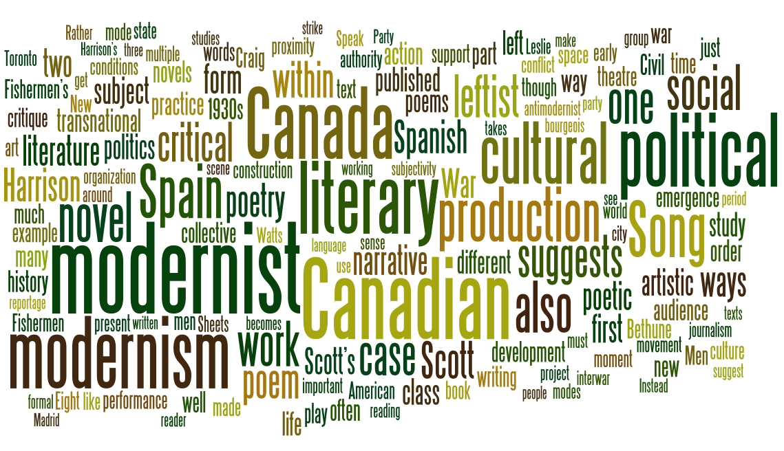 Writing Left: The Emergence of Modernism in English Canadian Literature. Diss. Dalhousie University, 2011. [visualisation]